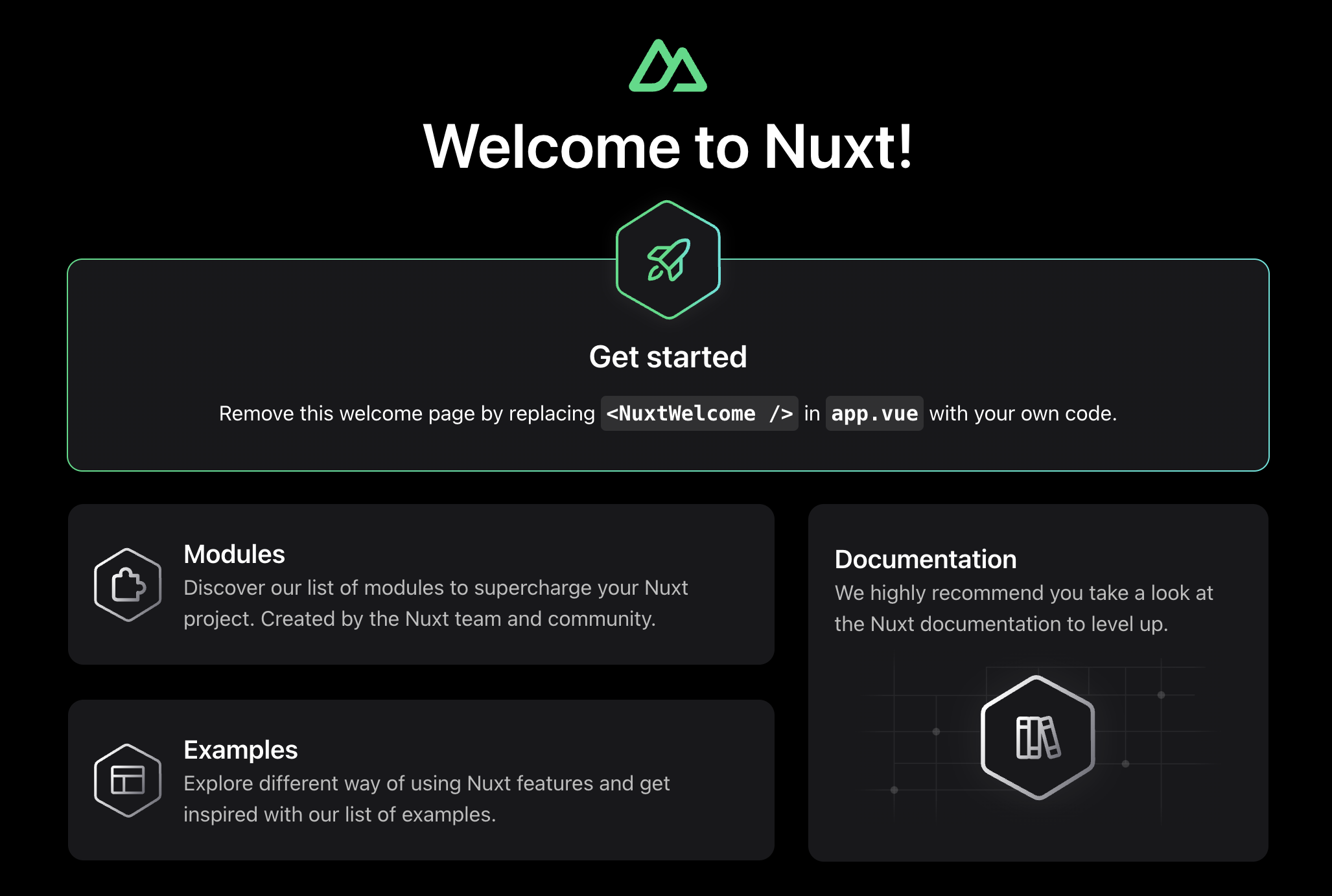 $ npx nuxi init <project-name>※<project-name>には任意のプロジェクト名を入力します。