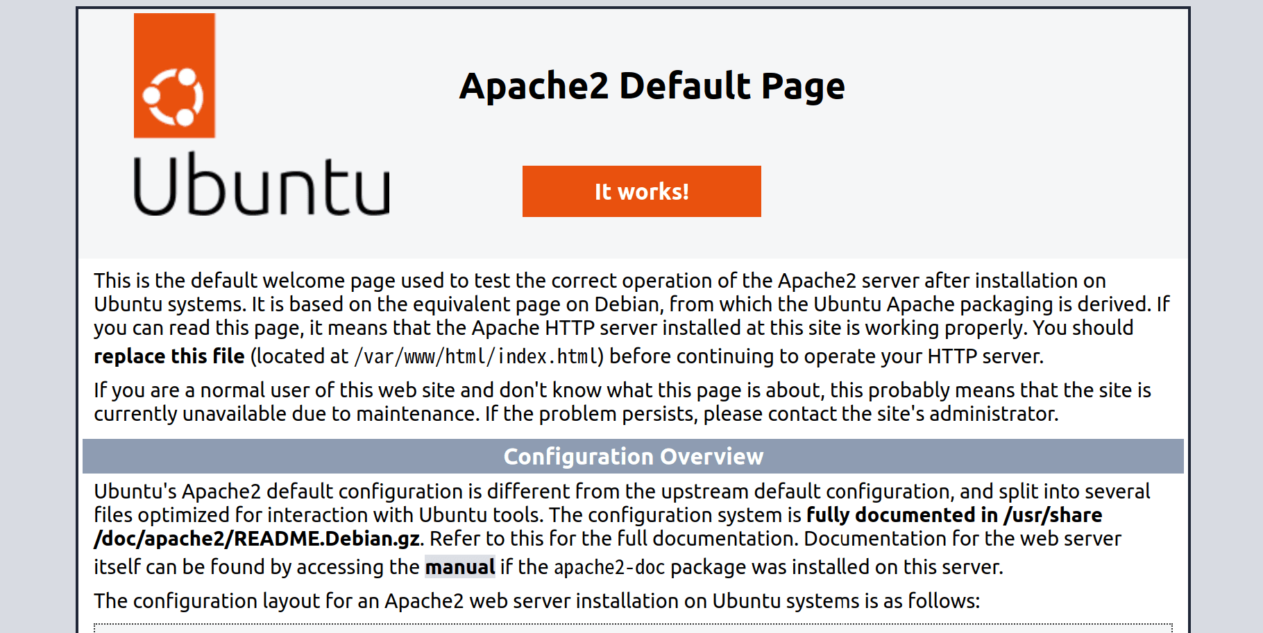 4. 以下のURLにアクセスし、デフォルトページが表示されることを確認します。